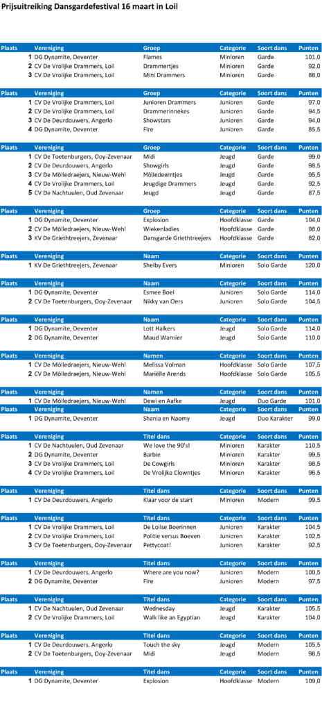Wat hebben wij een geslaagde dag gehad! De tweede editie van ons dansgardefestival was een groot succes. Met maar liefst 39 dansen hadden we een dagvullend programma. De meiden hebben fantastisch gedanst en vooral een plezierige dag gehad.
